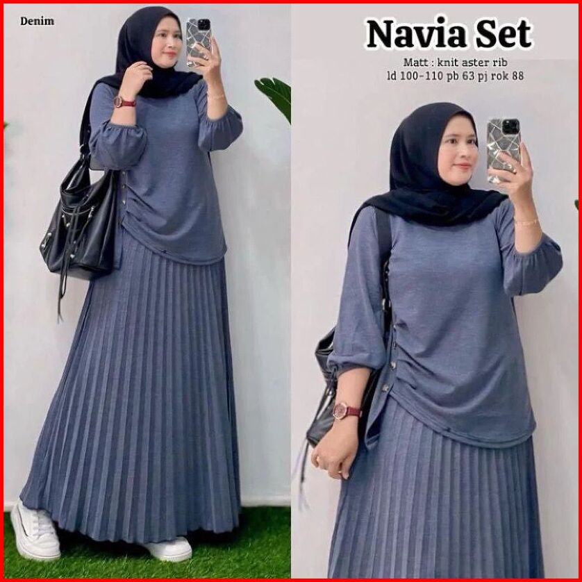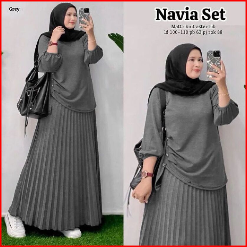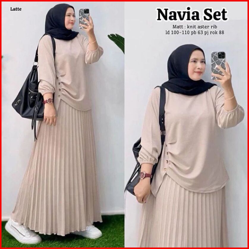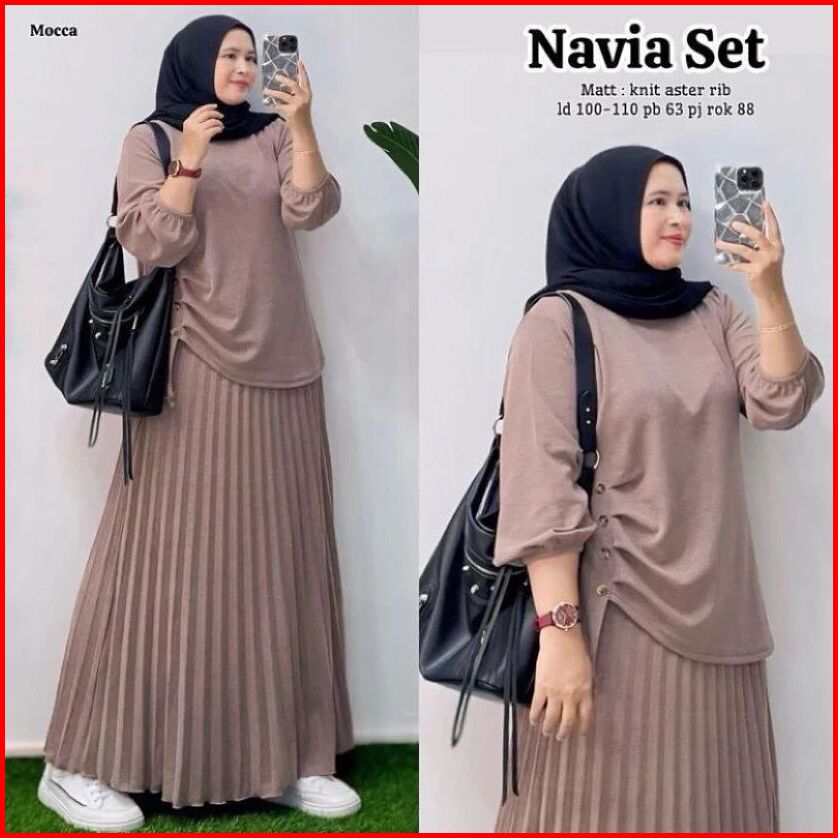 Antika Fashion - Navia Set 2in1 Rok Plisket Bahan Knit Aster Rib Setelan Terbaru 2025
