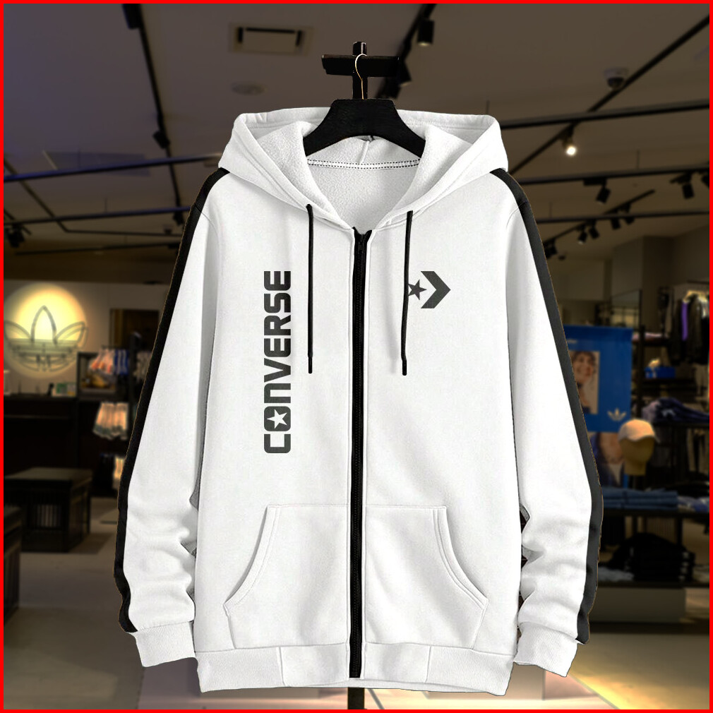 Jaket Hoodie Zip Up Zipper Converse Fleece Premium Pria Wanita Size M L Xl 2xl 3xl 4xl 5xl Distro