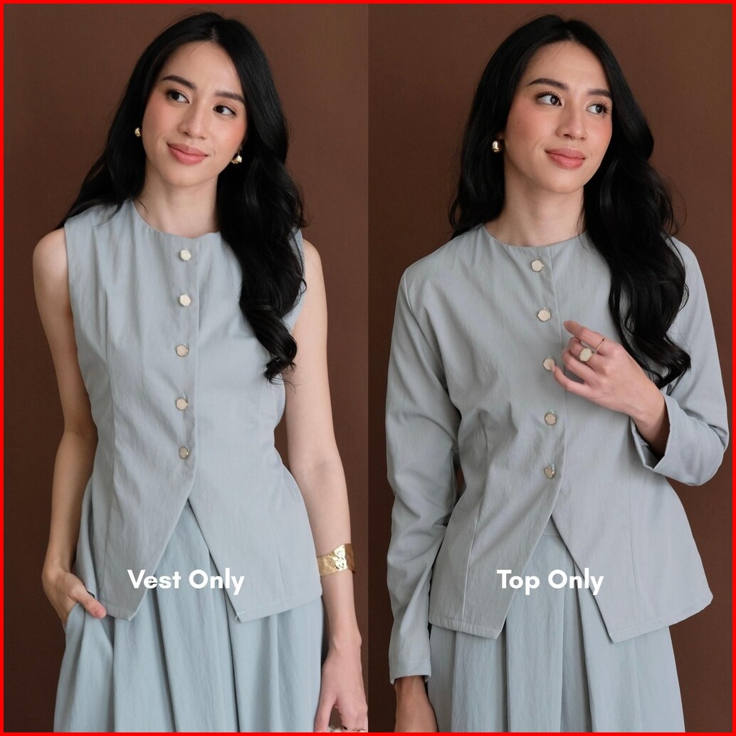Arla Set - Atkey Setelan Wanita - One Set Rok Vest Dan Atasan Panjang Kekinian