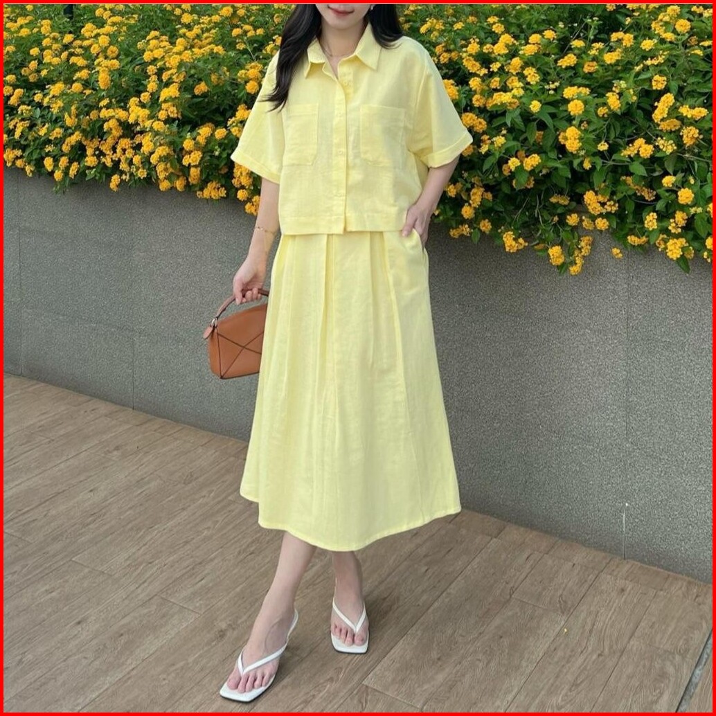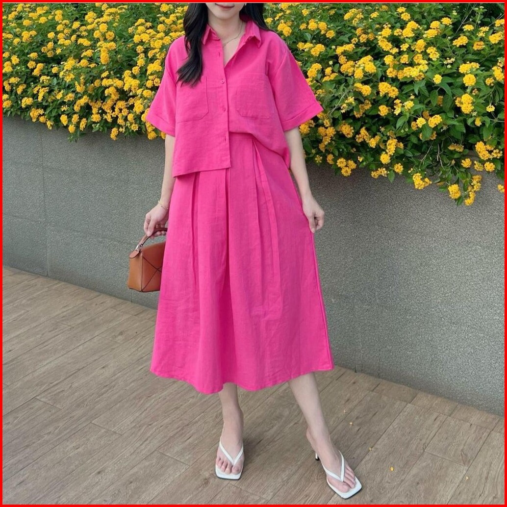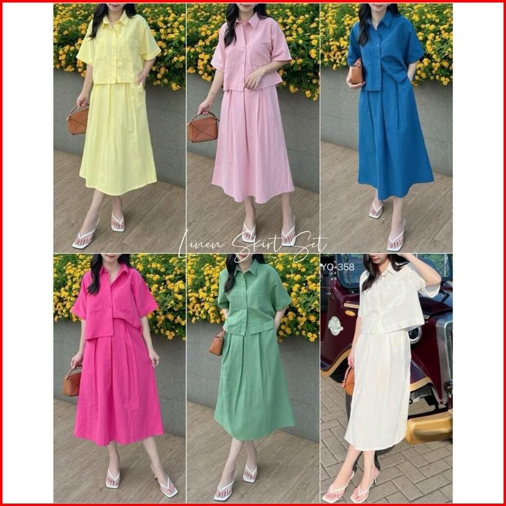 Fashion King - Set Wanita - Setelan Premium Linen Angel Set Wanita Atasan Dan Rok Yo-3588
