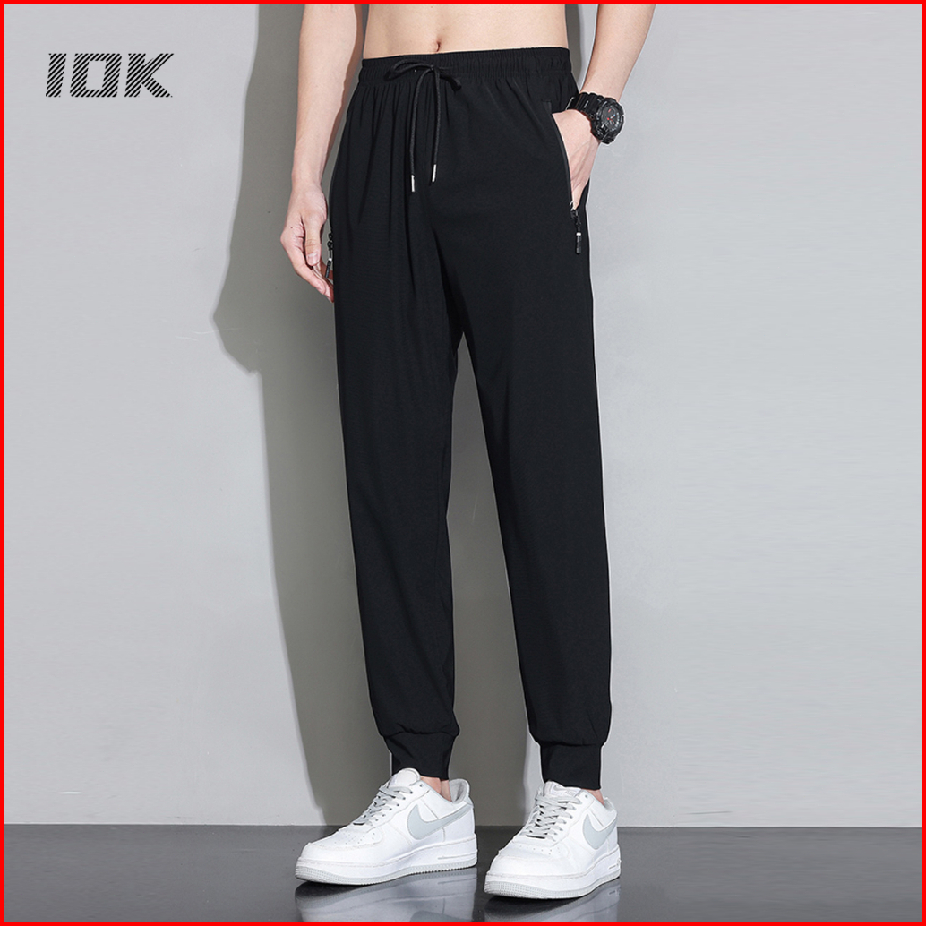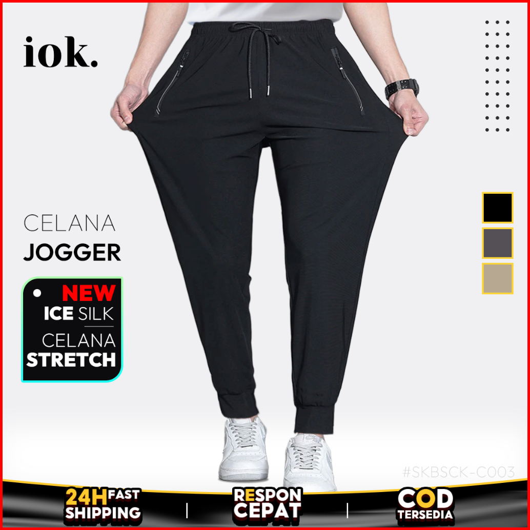 New Iok Celana Jogger Panjang Pria Ice Silk Celana Training Pants Celana Stretch Casual Nyaman Bernapas Saku Ritsleting