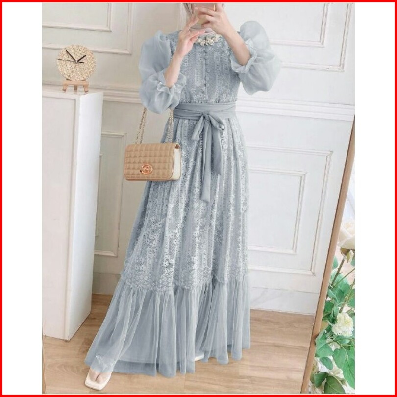 Tb91 Dress Brukat Ranai Belt Cantik Fyp Mewah Fashion Muslim Edisi Lebaran