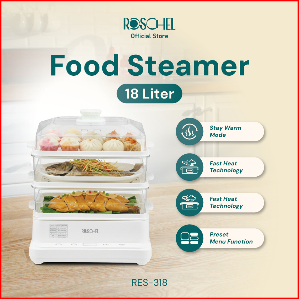 Roschel Electric Food Steamer Kukusan Listrik 18l Electric Cooker 3 Lapis Hotpot Steamer Listrik Multifungsi