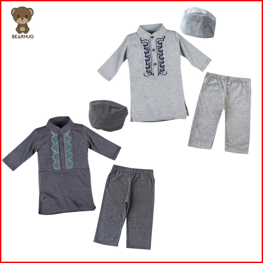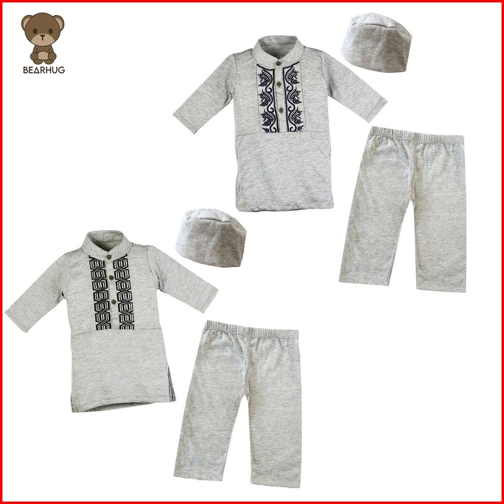 Bearhug Setelan Koko Bayi Laki-laki Xkg4 Premium Embroidery Include Topi Abu Mix 6-18 Bulan