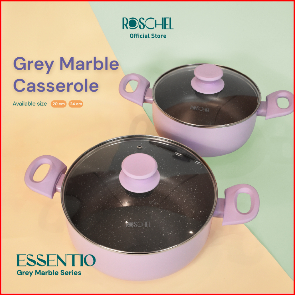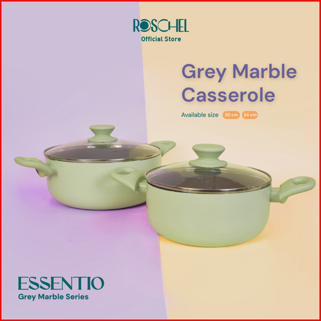 Roschel Essentio Marble Coating Non-stick Casserole 20 24 Cm Tutup Kaca Panci Wajan Penggorengan Dutch Oven Anti Lengket