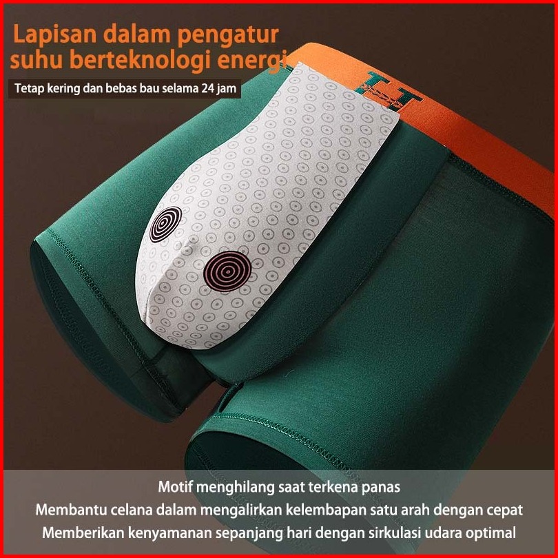 Hepnies Celana Boxer Pria Premium 3pcs Dengan Desain Magnetik Pengontrol Suhu Nyaman Bernapas Menyerap Keringat