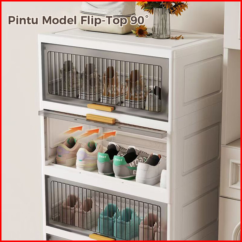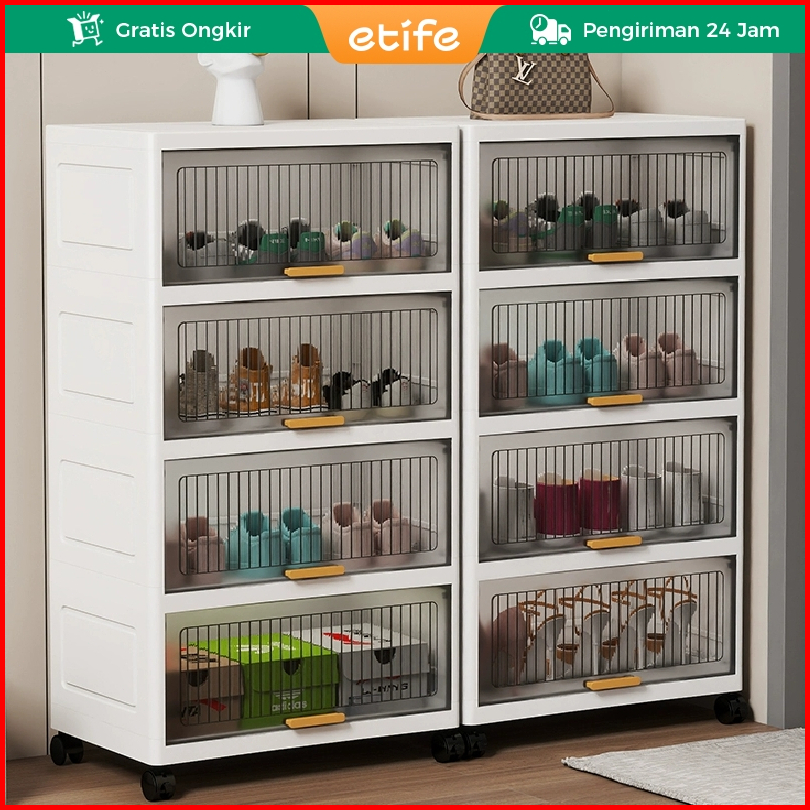 E-tife Lemari Sepatu Susun Minimalis Rak Sepatu Plastik Multifungsi Rak Sepatu Tertutup Anti Debu