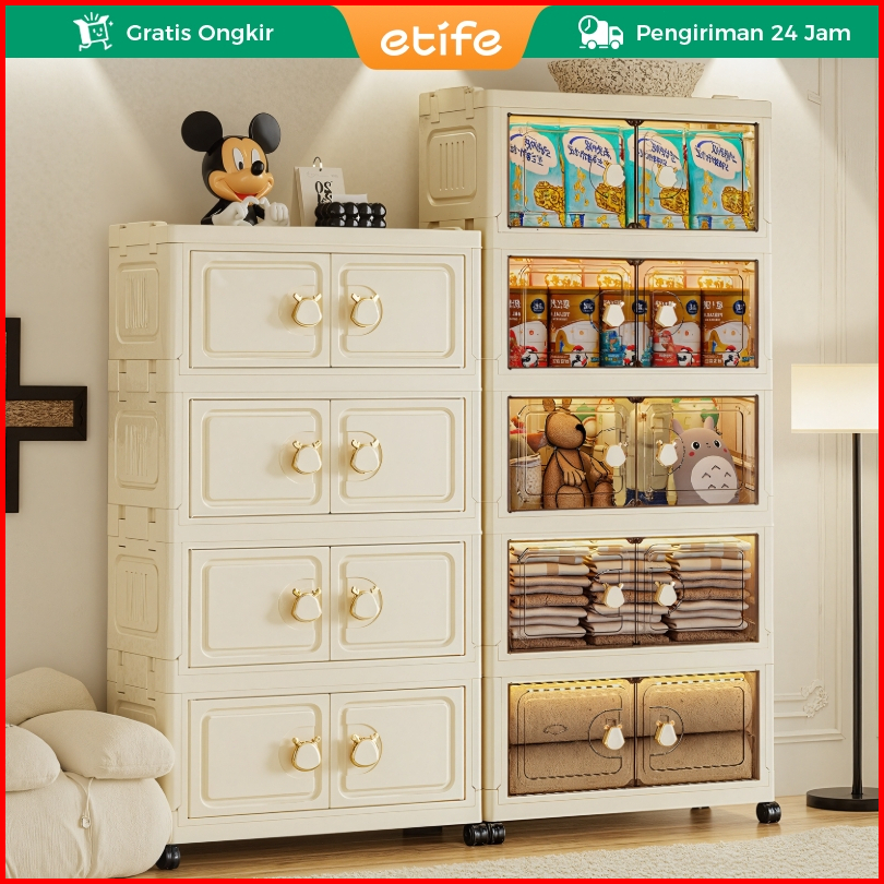 E-tife Lemari Plastik Susun Lemari Pakaian Plastik Lemari Serbaguna Aesthetic Lemari Anak Lipat