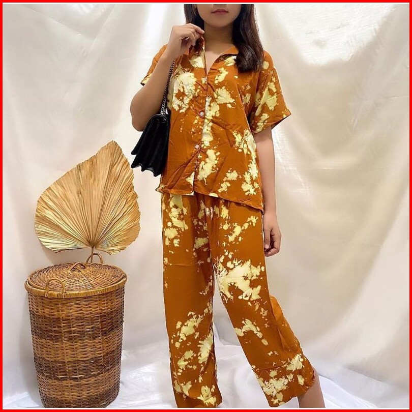 Setelan Bali Baju Tidur Piyama Busui Kancing Hidup Tye Dye