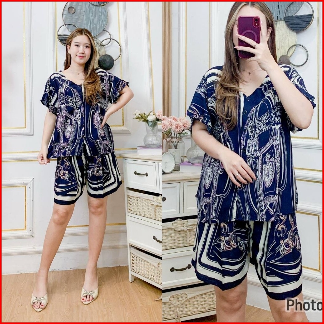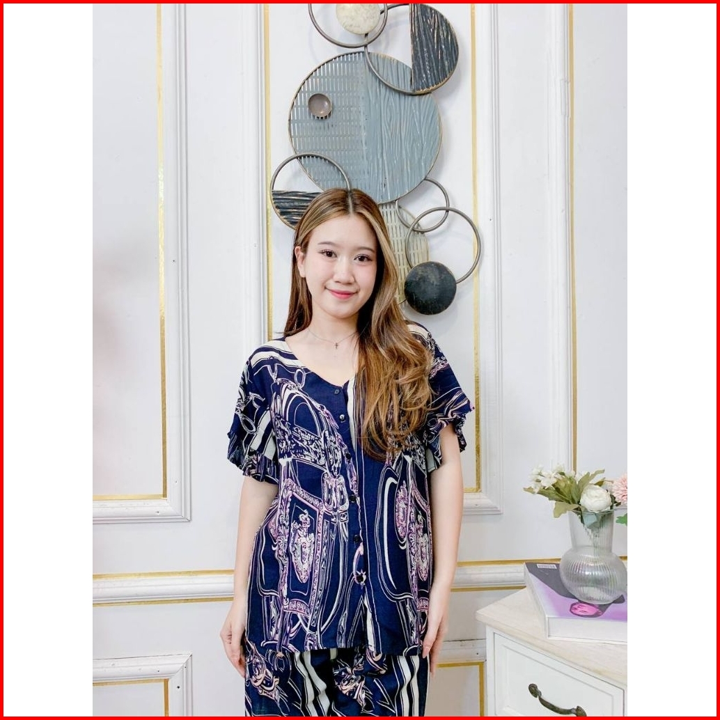 Daster Bali Set Vivian Pendek Katun Rayon Garis-garis