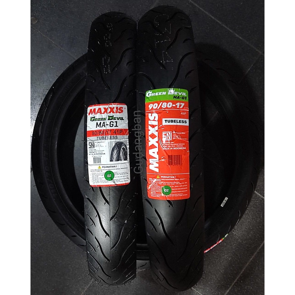 ( PAKET 2 BAN ) Maxxis GREEN DEVIL 80 80 17 dan 90 80 17 TUBELESS MAG1 Ban Motor RING 17 FREE PENTIL