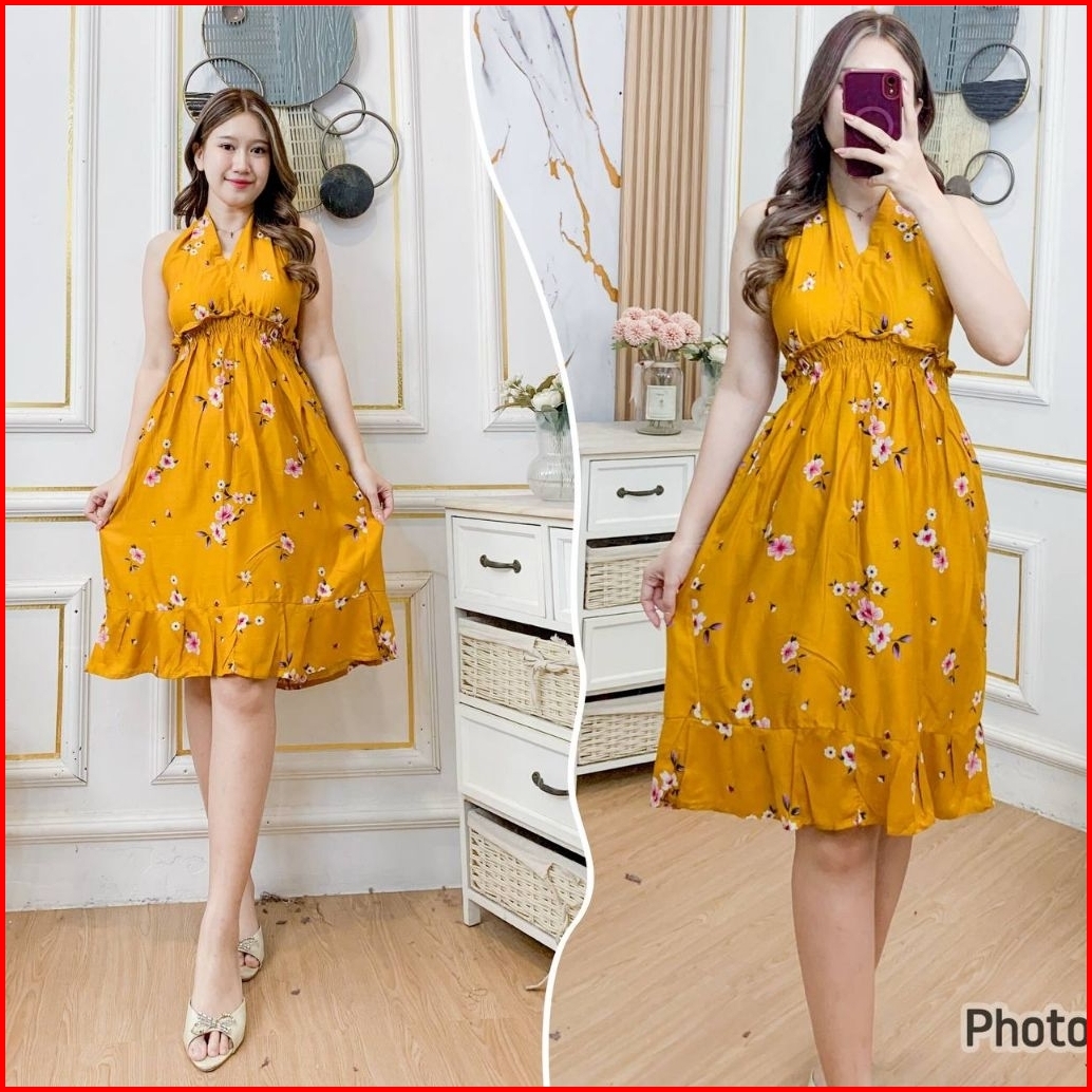 Daster Bali Pendek Tali Ikat Leher Alessa Bunga-bunga
