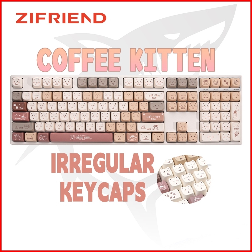 Zifriend Coffee Kitten Keycaps 141 Keys Dye Sublimation Moa Profile Irregular Keycaps Set For Diy Mechanical Keyboard Ke