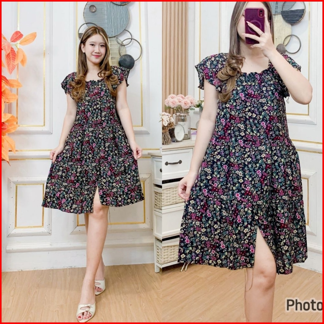 Daster Bali Jumbo Busui Azela Bunga-bunga Katun Rayon