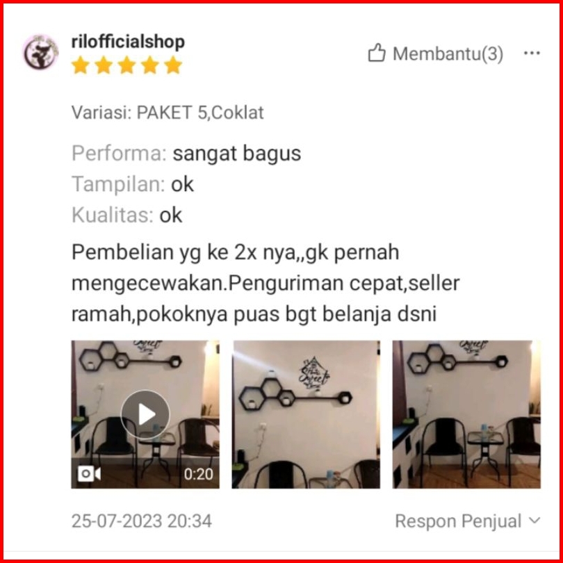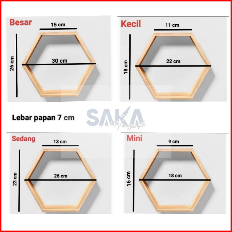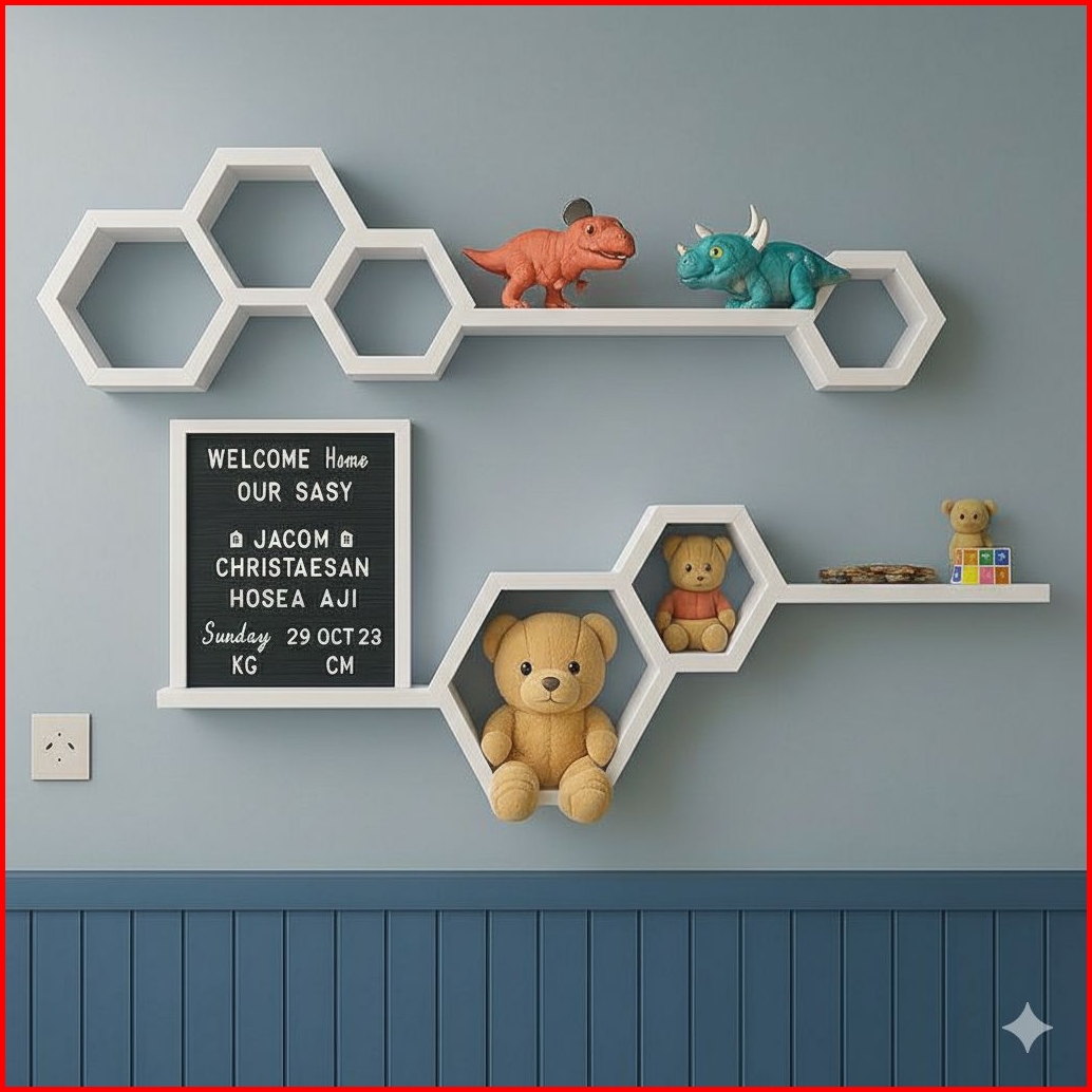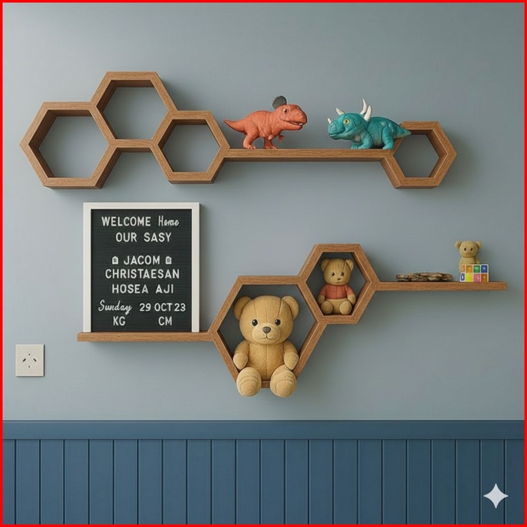 Rak Dinding Hexagonal Aestetic Satu Set Kayu Jati Belanda