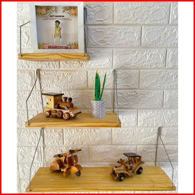 Rak Dinding Tempel Kayu 1 Set Isi 3 Pcs Ukuran 30 25 20 Rak Kayu Serbaguna
