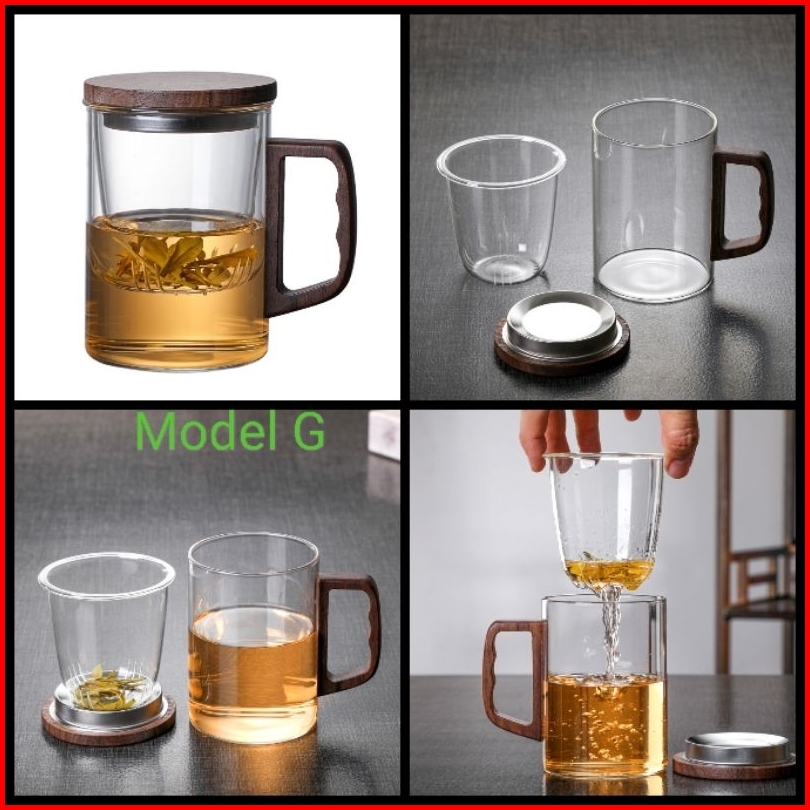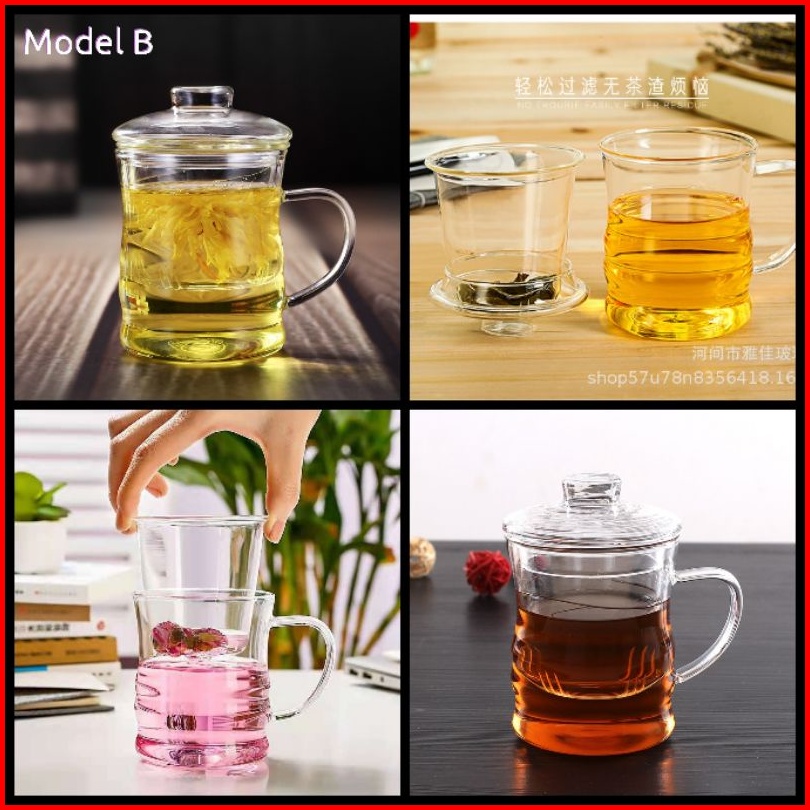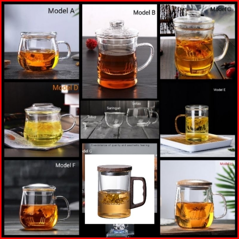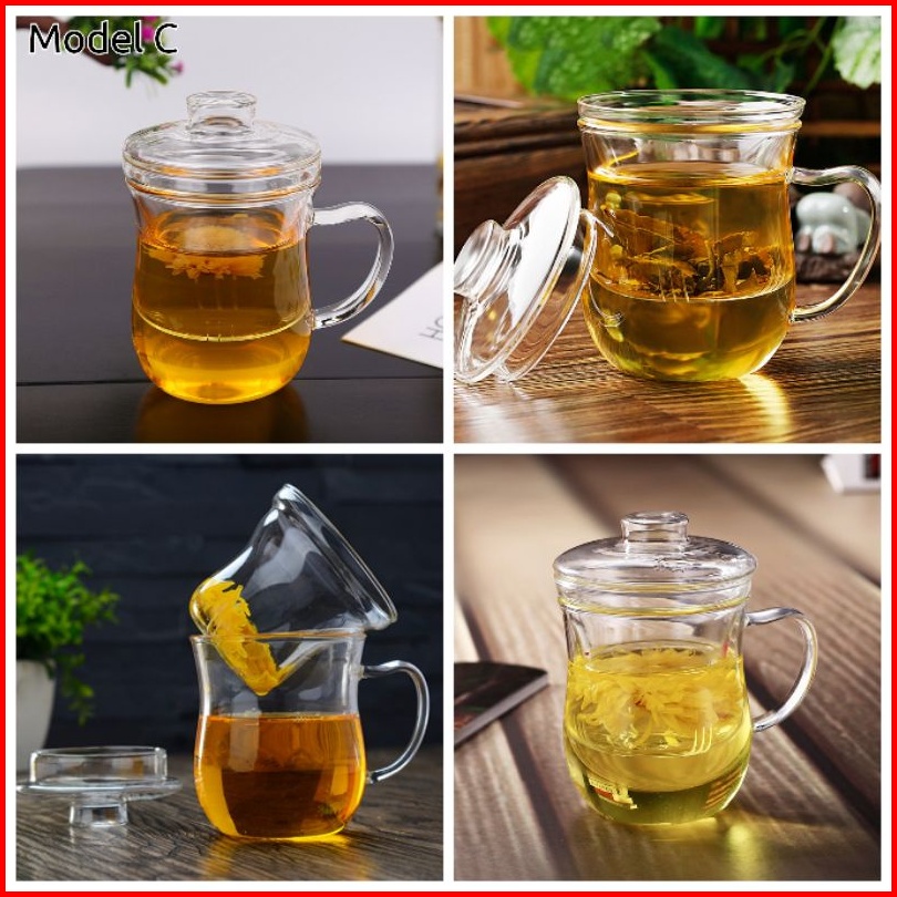 Glass Tea Cup With Infuser And Lid Gelas Teh Dengan Saringan Dan Tutup