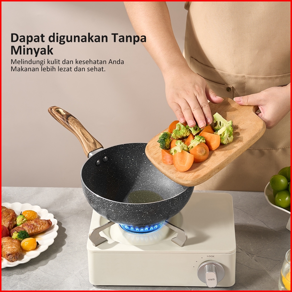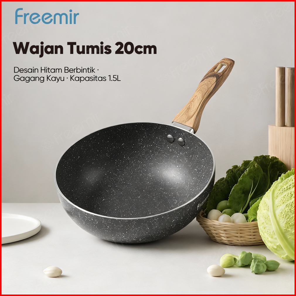 Mall Freemir Aluminum Pan 20cm Anti Lengket Gagang Kayu Ekstra Besar Peralatan Dapur Memasak Serbaguna