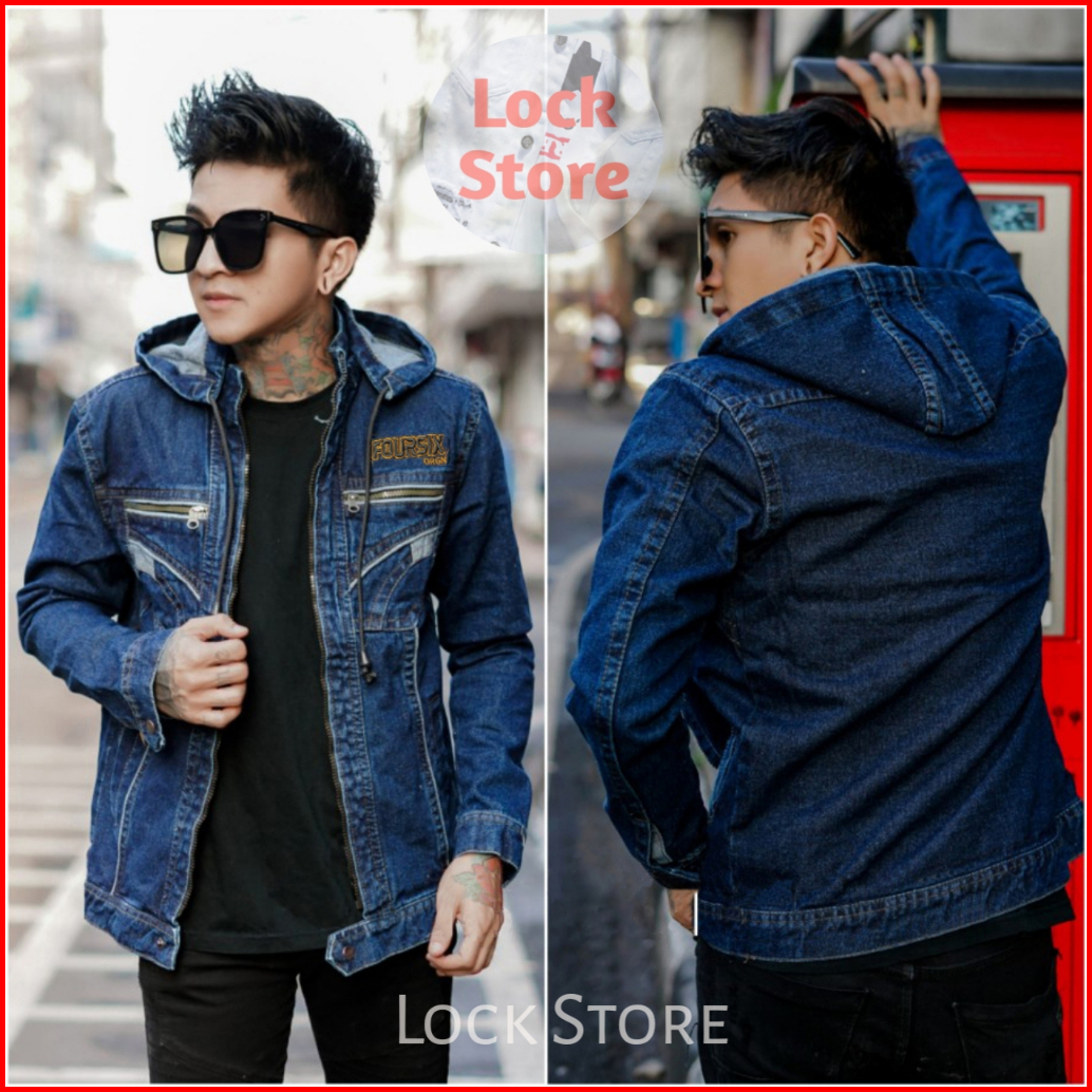 Jaket Denim Jeans Resleting Kupuk Topi Bisa Dibukapasang