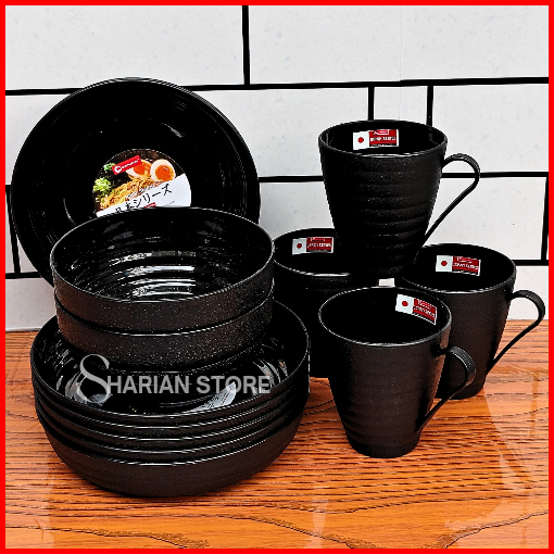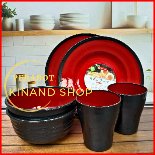 Set Ramen Komplit Isi 12 Pcs Campur 4 Piring 4 Mangkuk 4 Cangkir