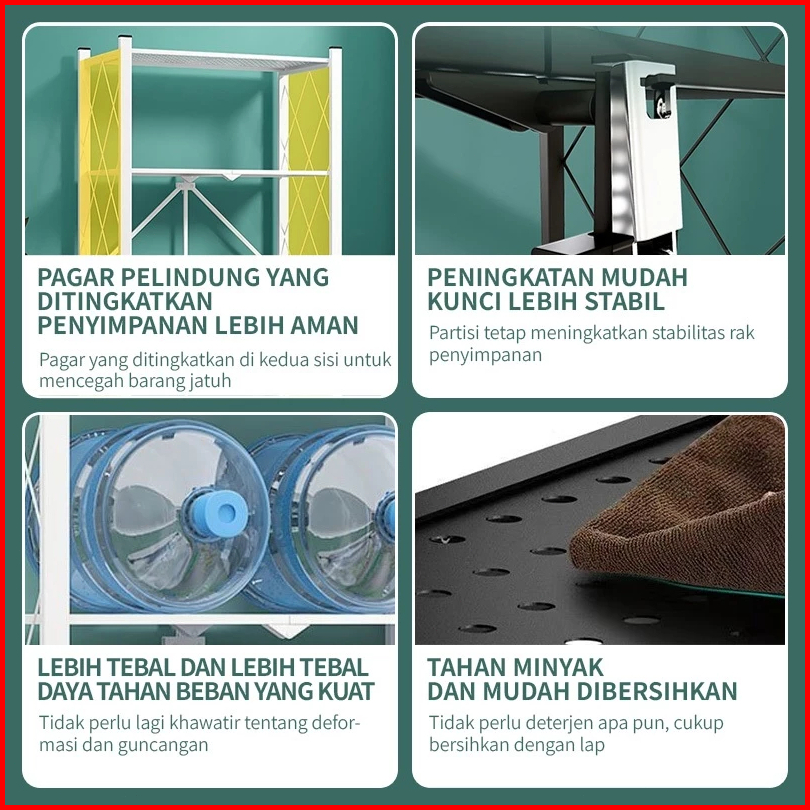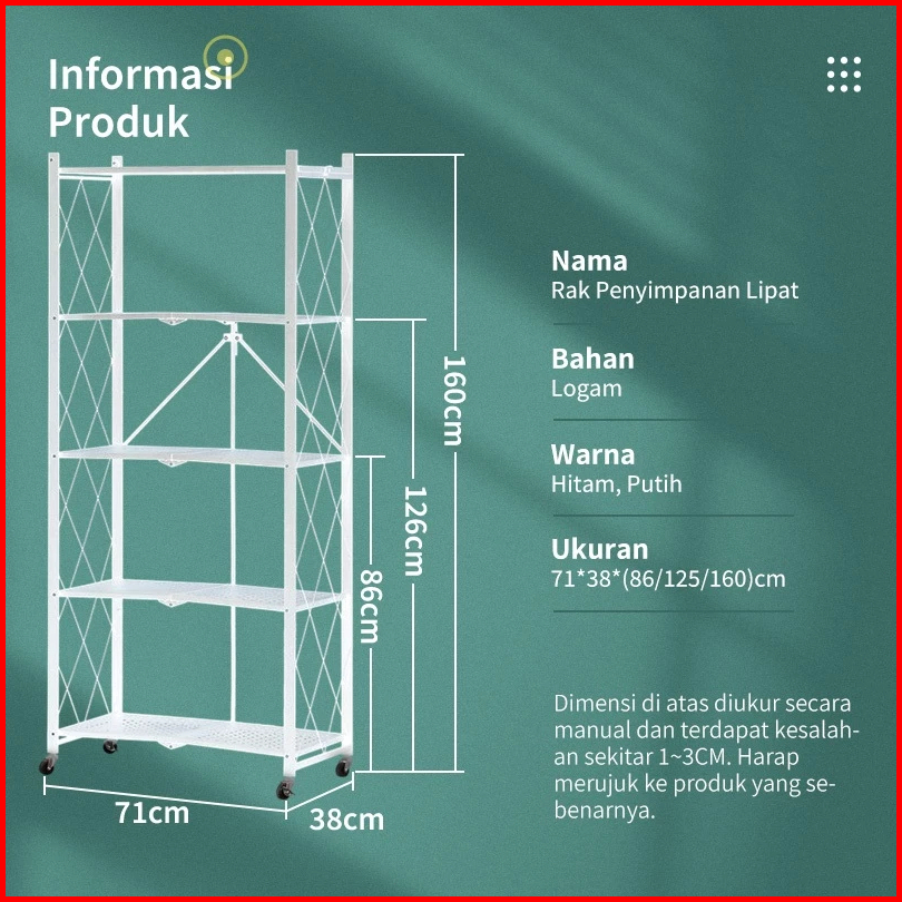 Tanpa Instalasi Rak Dapur Lipat Serbaguna Rak Besi Susun 5 Tingkat Rak Penyimpanan Susun Multi-fungsi