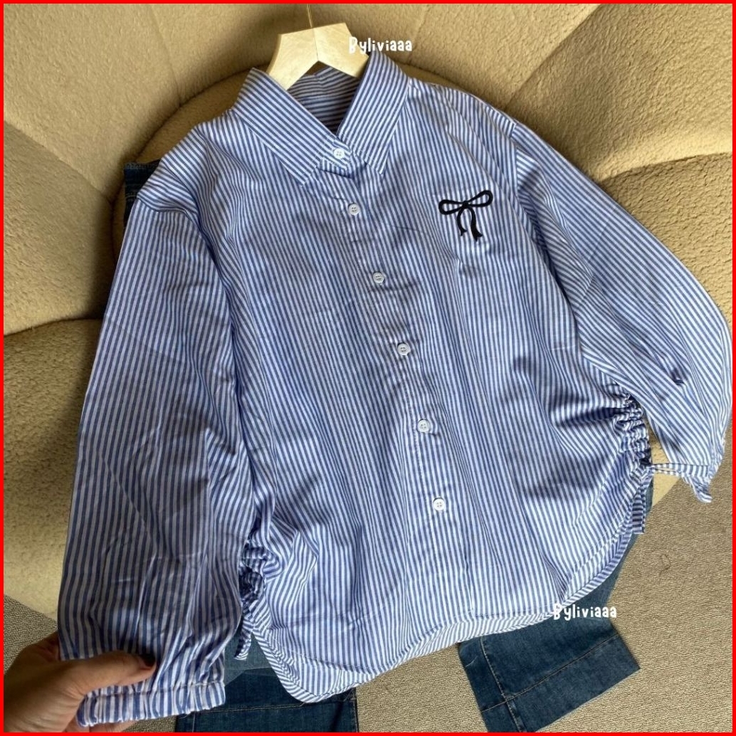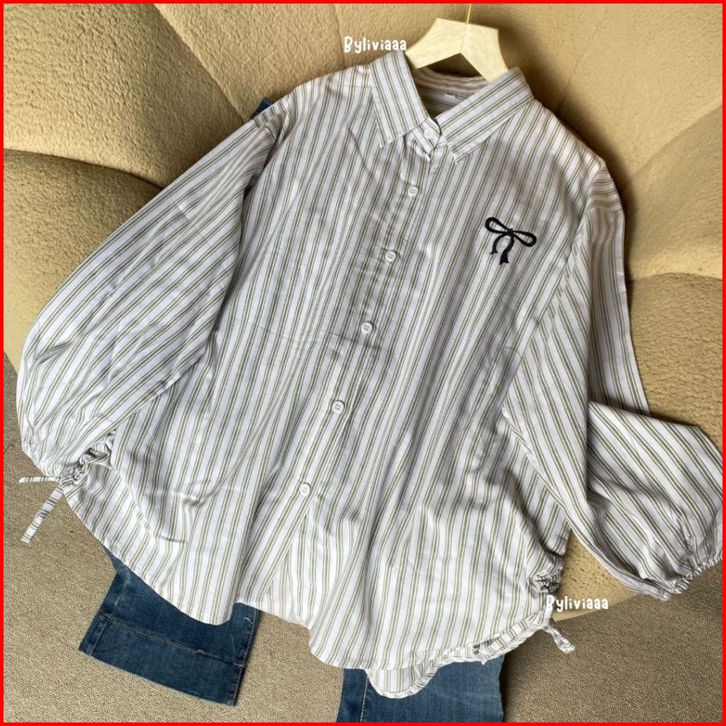 Blouse Katun Garis Bordir Kerut Kanan Kiri