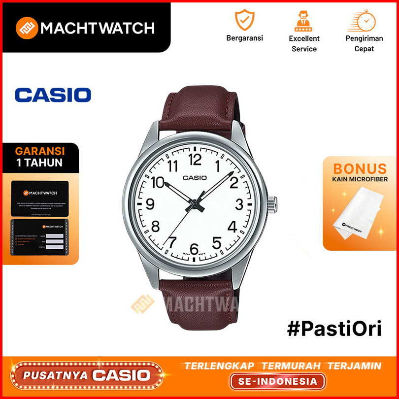 Time Baruan Jam Tangan Pria Analog Casio Standard Mtp-v005l-7b4udf Mtpv005 Mtp-v005l Brown Leather