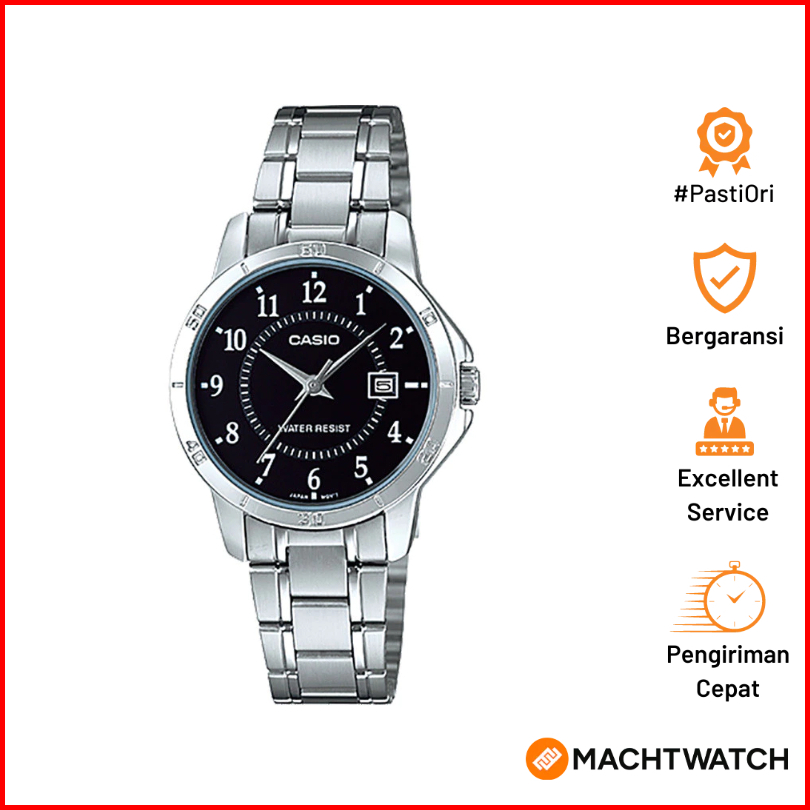 Jam Tangan Wanita Casio Standard Ltp-v004d-1budf Ltpv004 Ltp-v004d Black Dial Stainless Steel Band