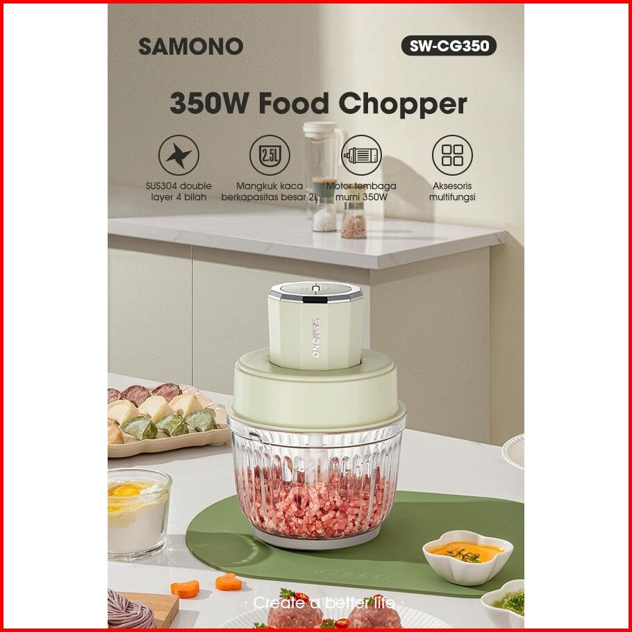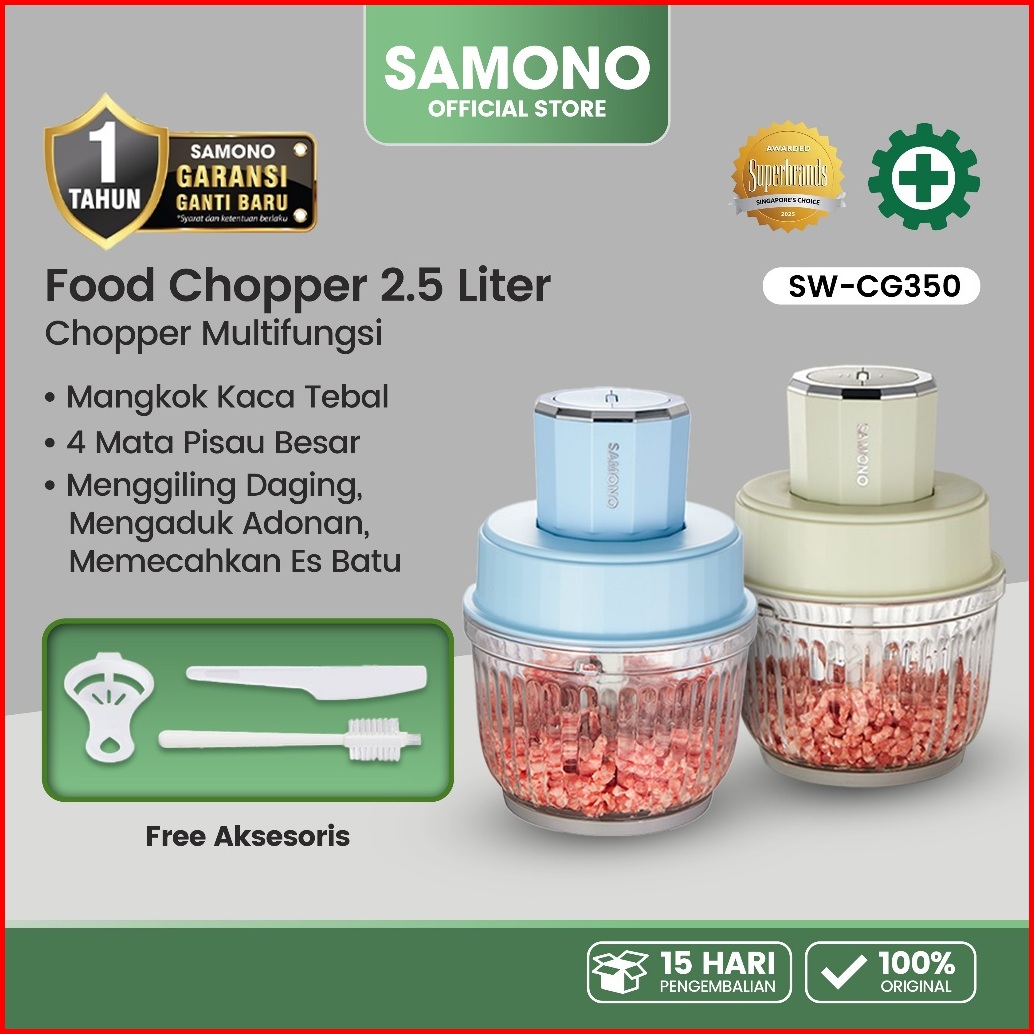 Samono Chopper Multifungsi 2.5 Liter Food Processor Daya Kuat Penggiling Daging Penghalus Makanan Garansi 1 Tahun Sw-cg3