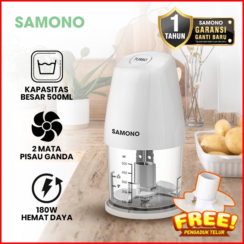 Samono Chopper Turbo Serba Guna 180w Multifungsi 500ml Food Processor Penggiling Daging Food Graded 2 Mata Pisau Sw-c180