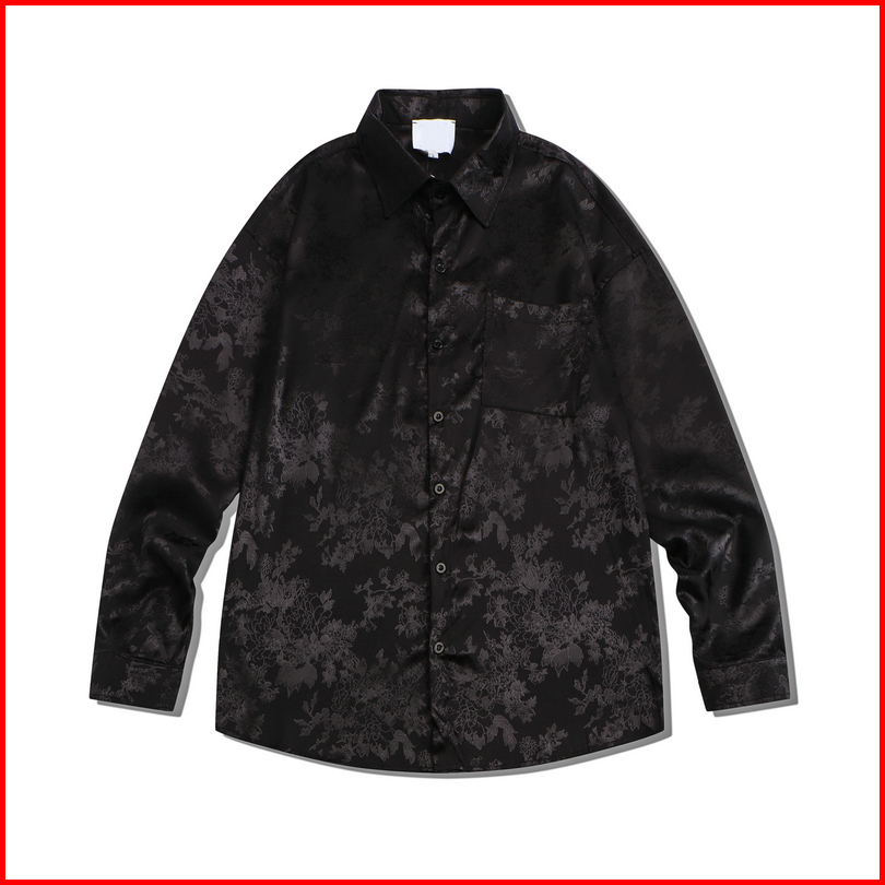 Dark Icon Jacquard Material Oversized Men S Shirt Long Sleeve Turn-down Collar Soft Loose Shirts For Men Women Black Whi