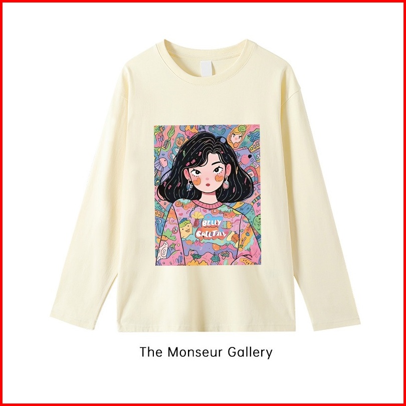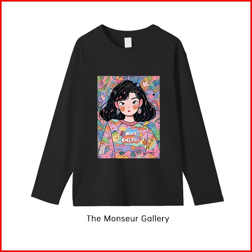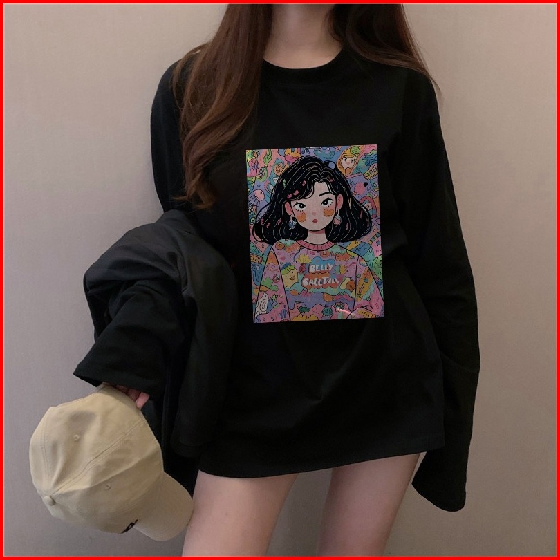The Monseur Gallery Baju Kaos Wanita Lengan Panjang Kaos Oversize Wanita Baju Atasan Wanita Cartoon Colorful Girl Print