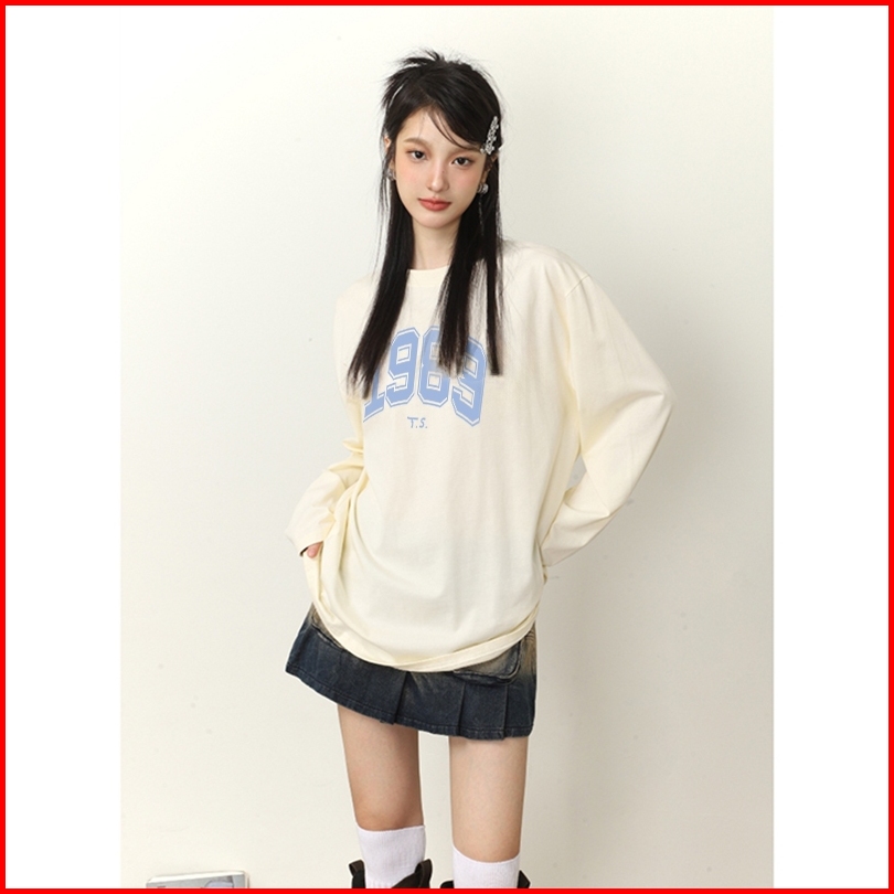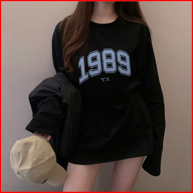 The Monseur Gallery Baju Kaos Wanita Lengan Panjang Kaos Oversize Wanita Baju Atasan Wanita 1989 Ts Kaos Wanita Cream
