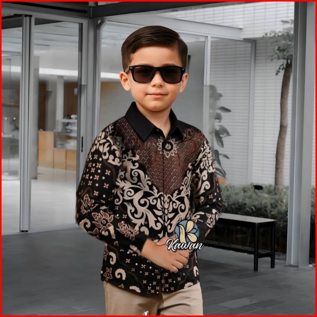 0kemeja Batik Anak - Batik Anak - Baju Batik Anak Laki Laki Umur 2-12 Tahun Kemeja Batik Lengan Panjang