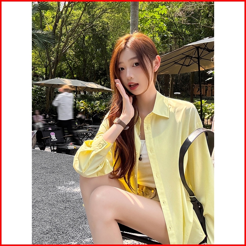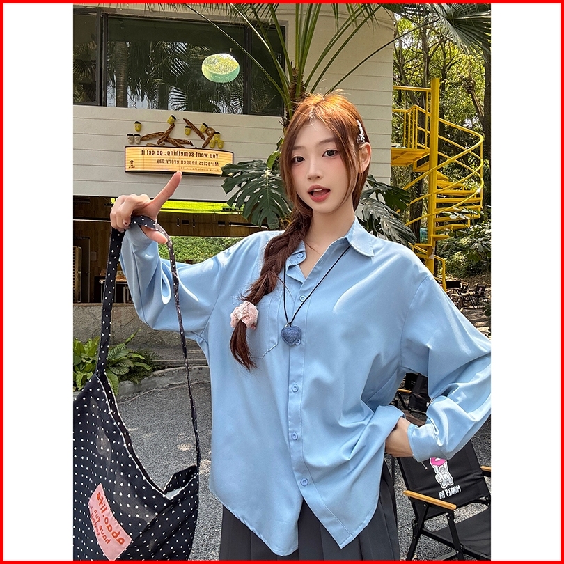 The Monseur Gallery Kemeja Lengan Panjang Kasual Longgar Berwarna Permen Polos Untuk Wanita