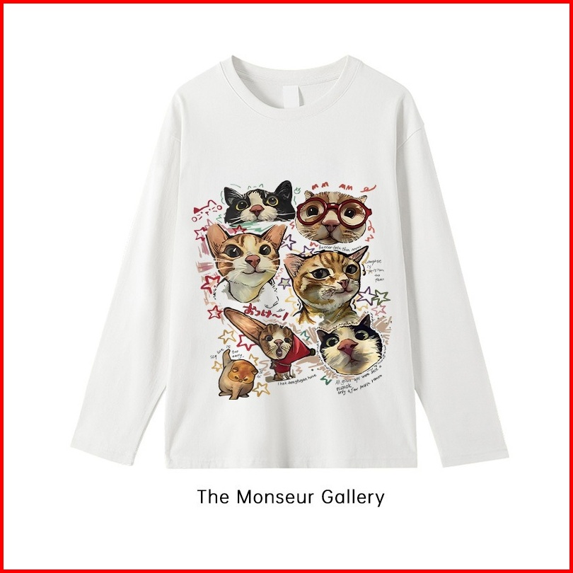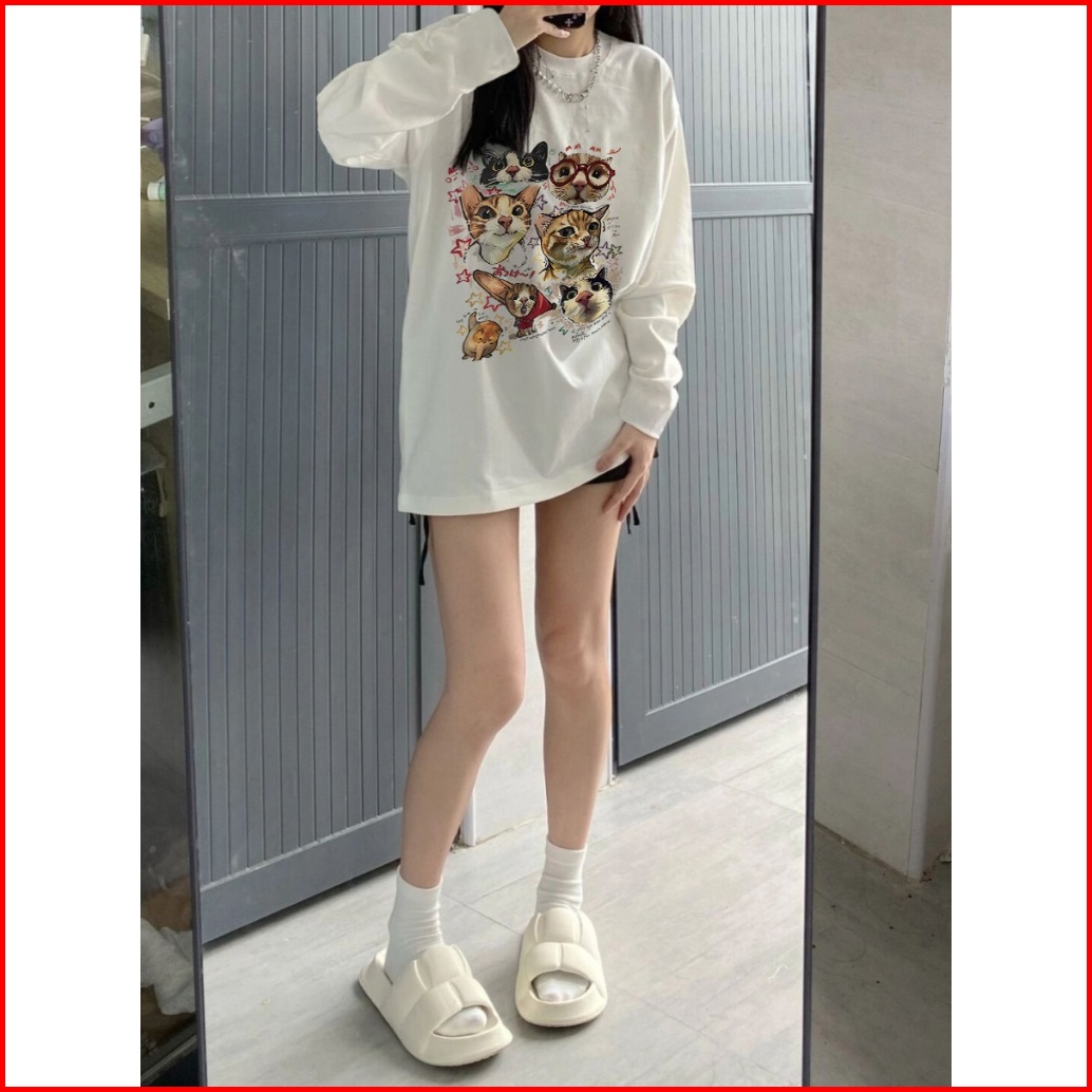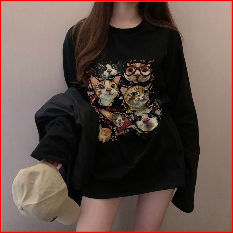 The Monseur Gallery Baju Kaos Wanita Lengan Panjang Kaos Oversize Wanita Baju Atasan Wanita Funny And Cute Cat Headshots