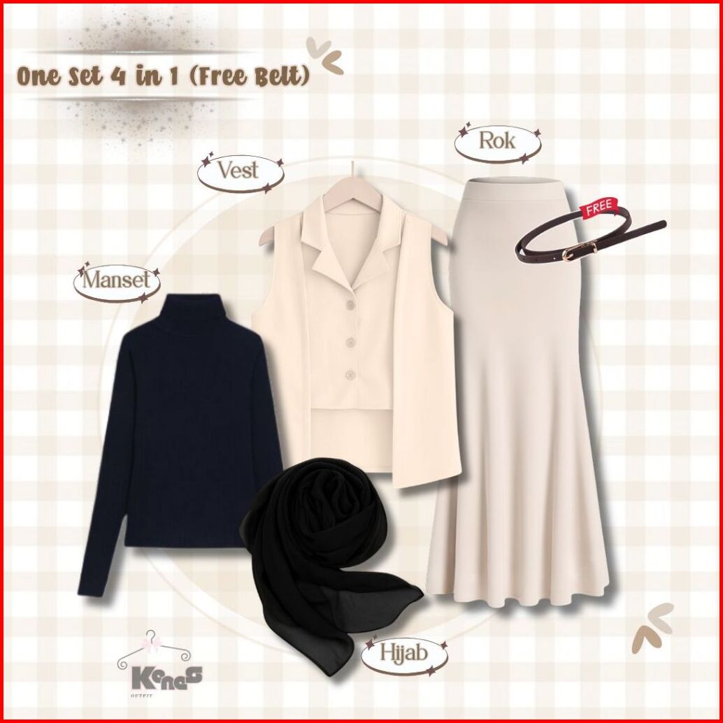 One Set Korean Look 4 In 1 Vest Mecca Rok Duyung Manset Hijab Ootd Wanita Remaja Kekinian -kn55