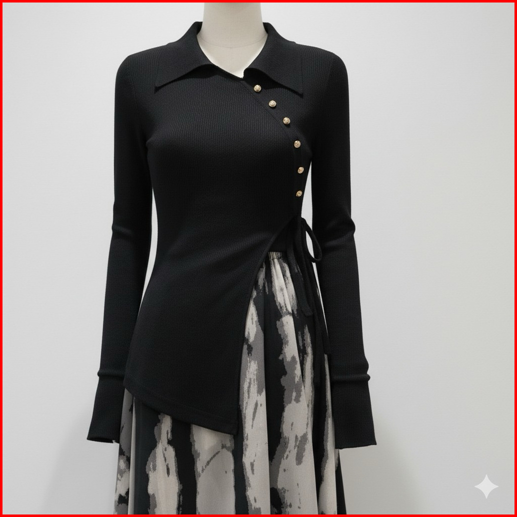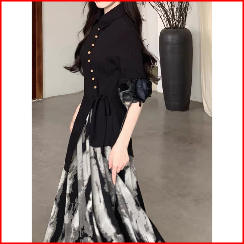 D320 Set Rok Panjang Atasan Kerah Vintage Dress Wanita Long Skirt One Set