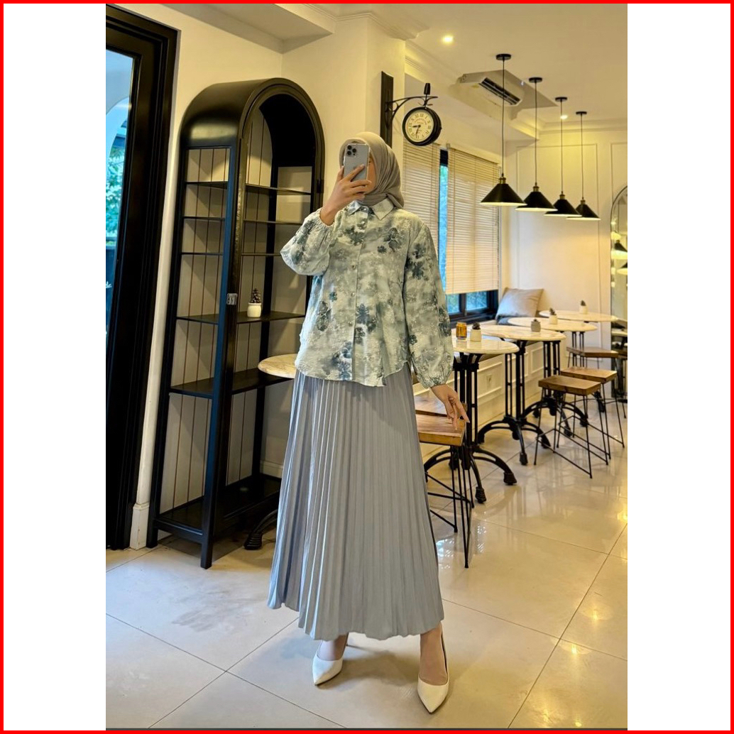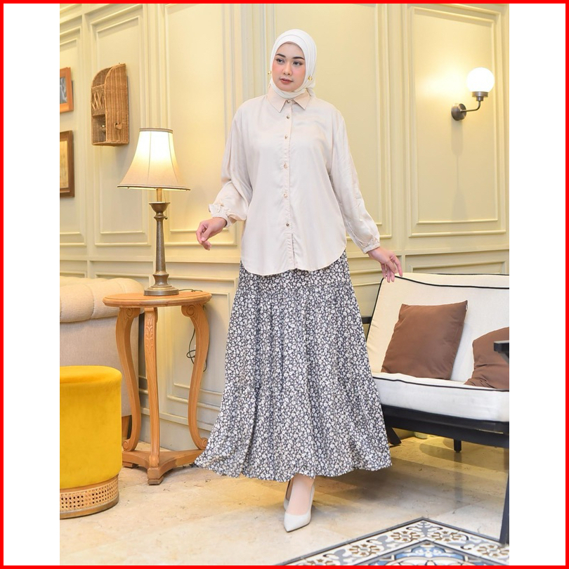 One Set Setelan Rok Wanita Setrok Kemeja Rok Setelen Kemeja Bahan Rayon Premium Baju Wanita Setelan Wanita