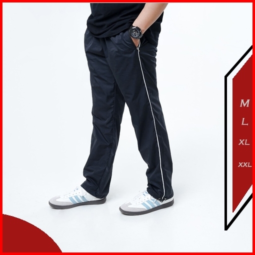 Ezry X Celana Parasut Panjang Strip Baggy Track Long Pants Loose Olahraga Kasual Pria Wanita Hitam