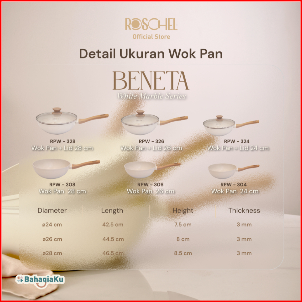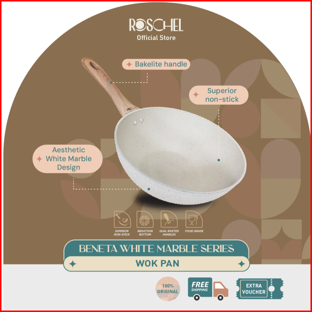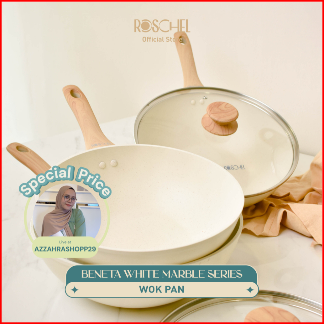 Special Azzahrashopp29 Roschel Beneta White Marble Coating Non-stick Wok Pan 20 24 26 28 32cm Tutup Kaca Panci Wajan Pen