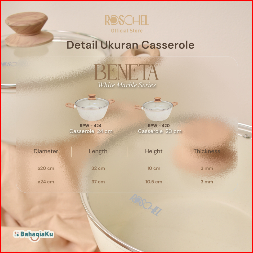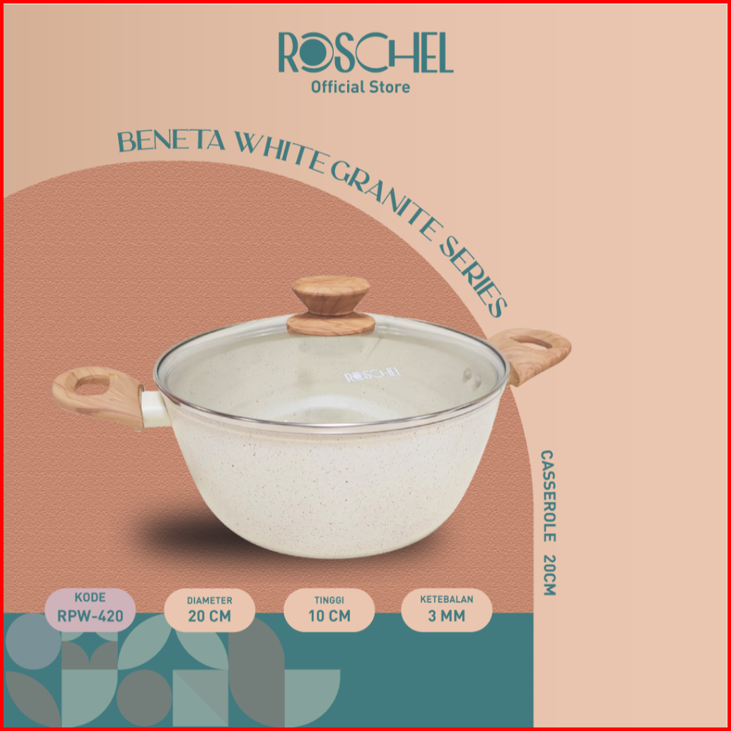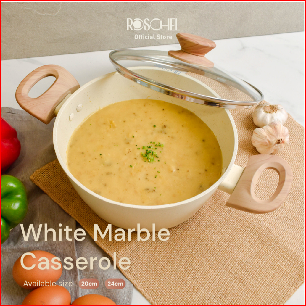 Special Lila.azmina Roschel Beneta White Marble Coating Non-stick Casserole 20 24 Cm Tutup Kaca Panci Wajan Penggorengan
