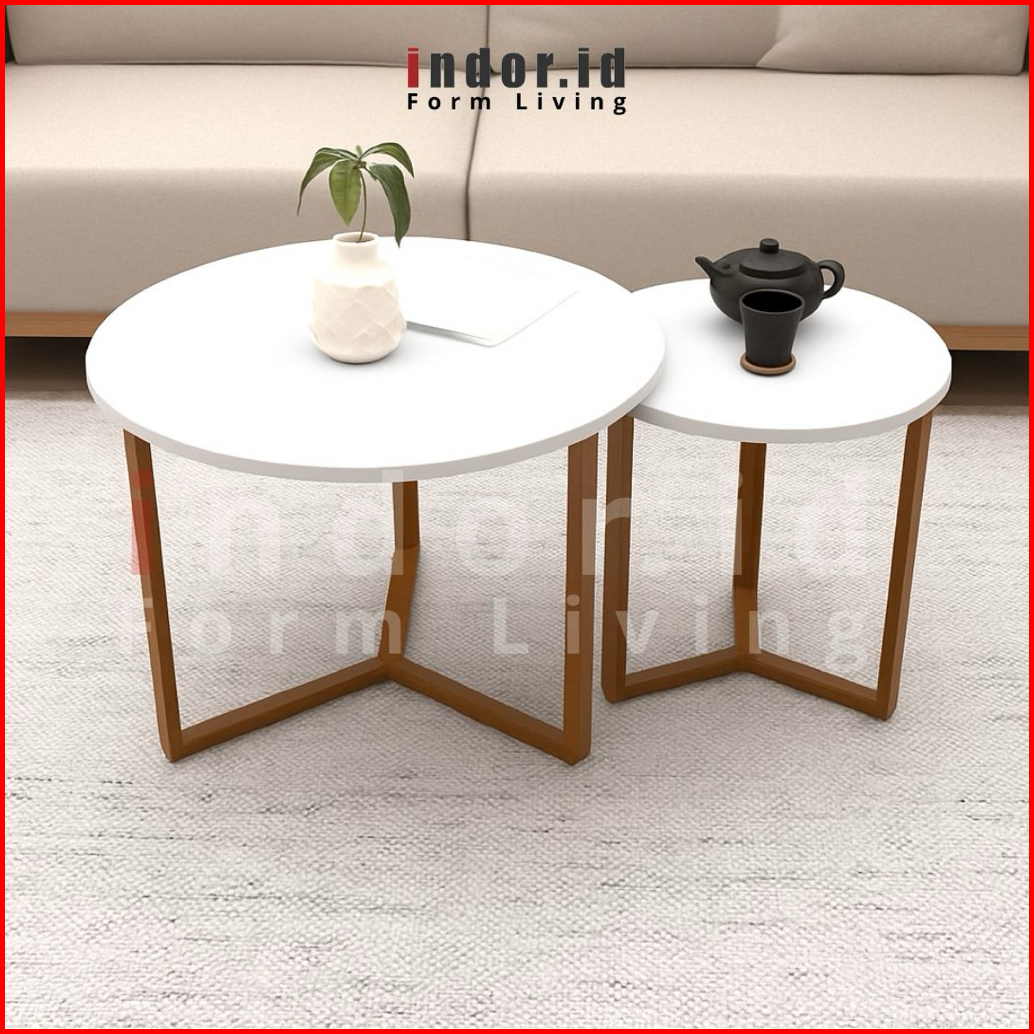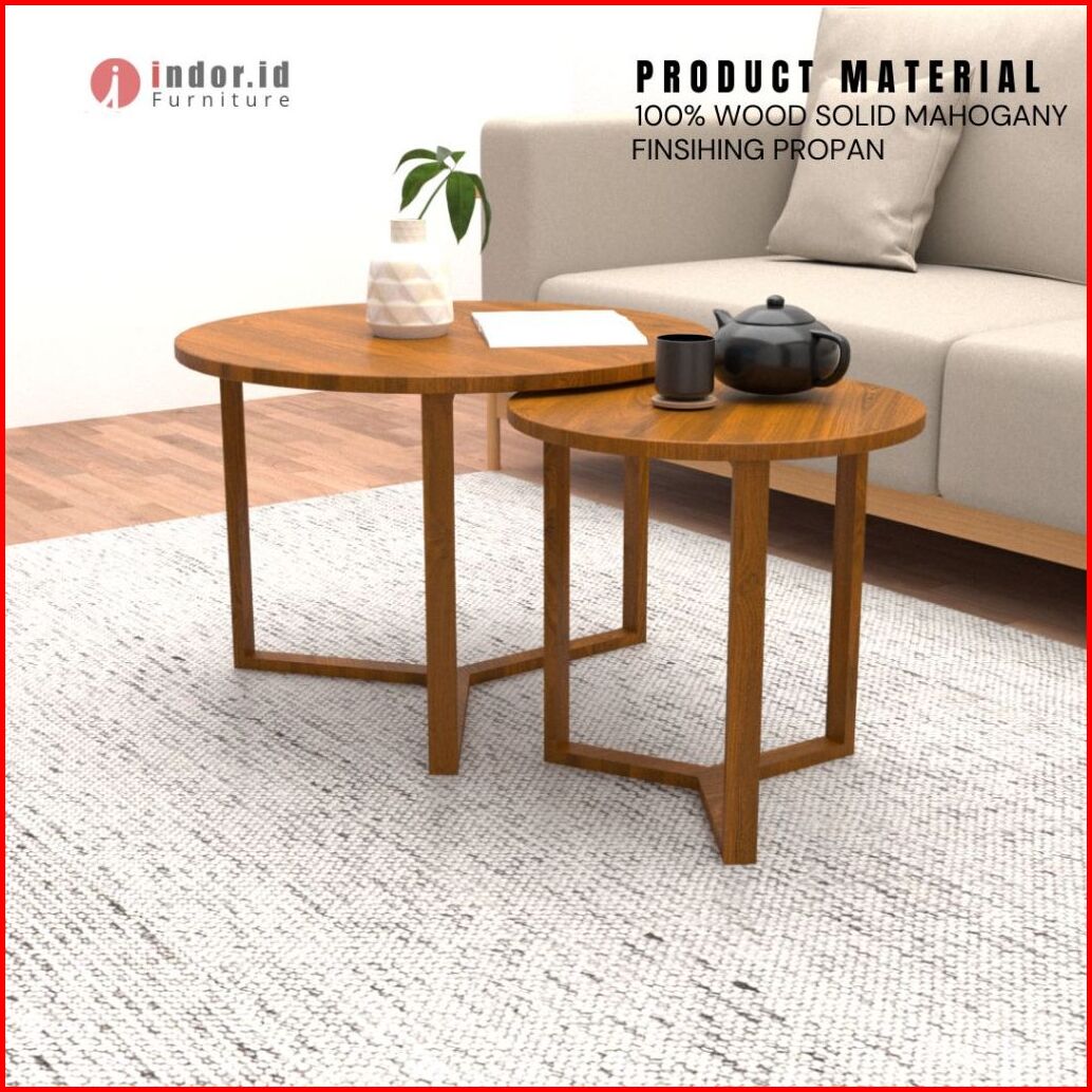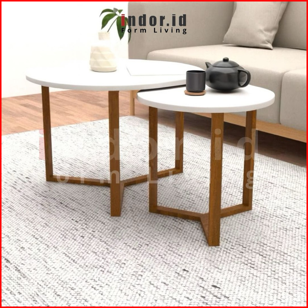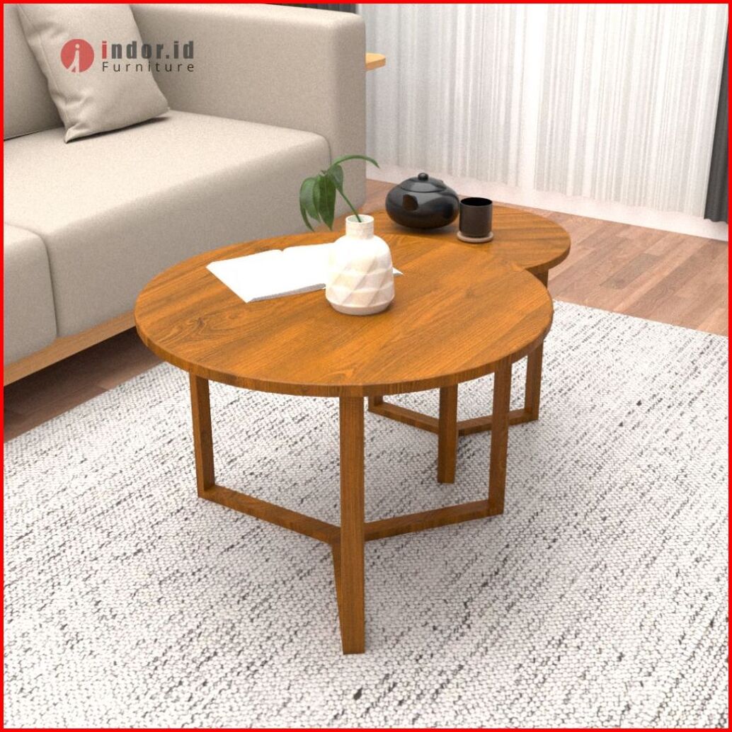 Set Meja Bulat Kayu Ruang Tamu Minimalis Meja Sudut Aesthetic Mb4060