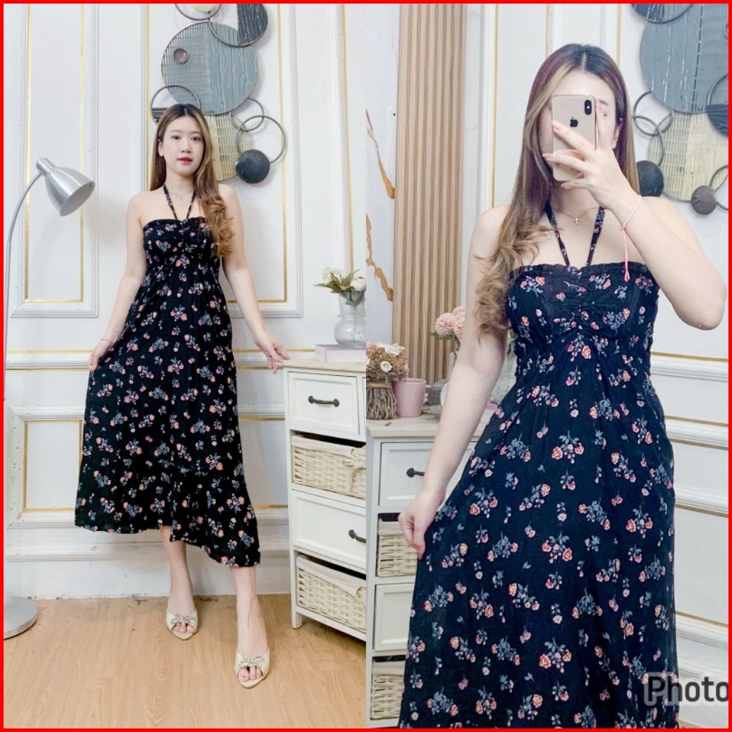 Daster Bali Panjang Tali Leher Carmen Katun Rayon