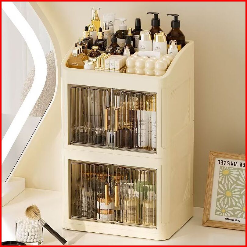 E-tife Rak Kosmetik Aesthetic Tertutup Rak Meja Kosmetik Plastik Rak Organizer Make Up Anti Debu