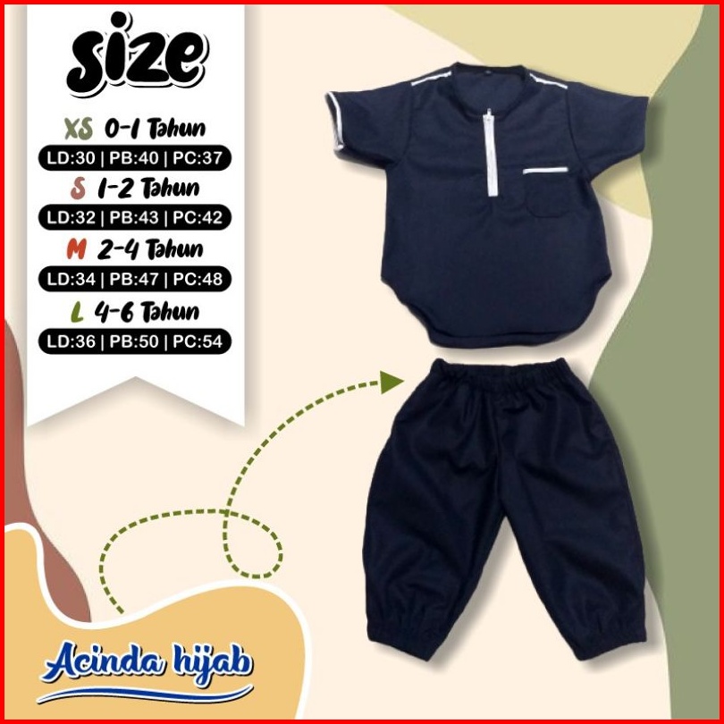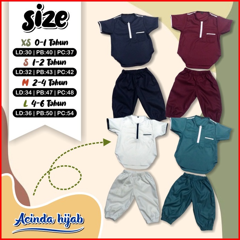 Akekah Baju Koko Kurta Anak Bayi Katun Toyobo Fodu Setelan Celana Joger 0-6 Tahun Premium
