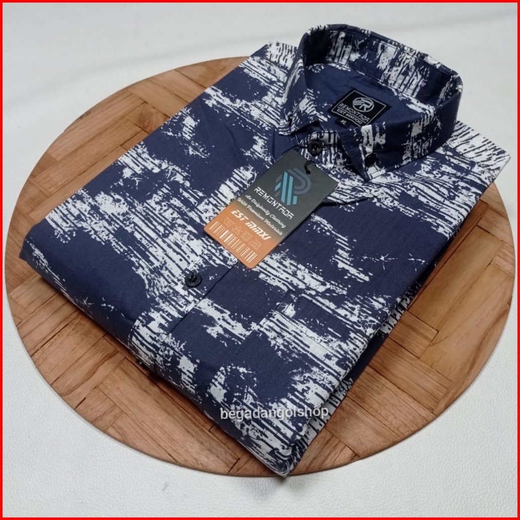 Kemeja Pria Motif Katun Ukuran M-xl