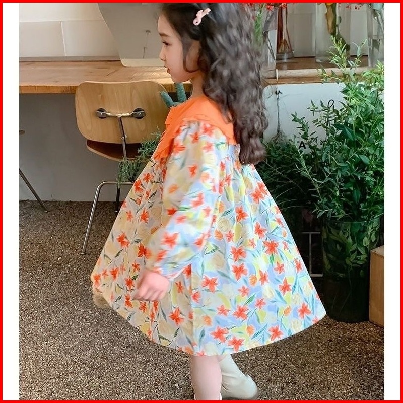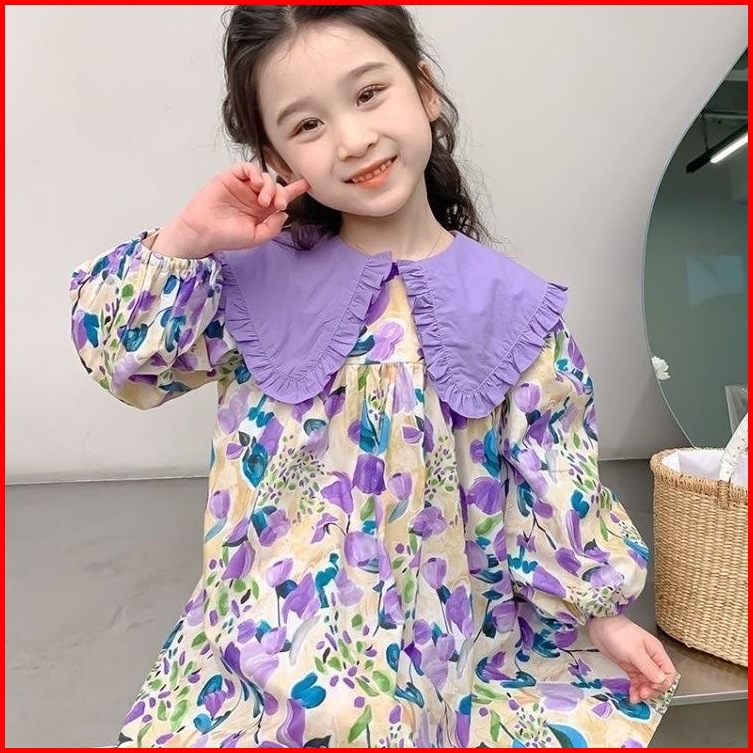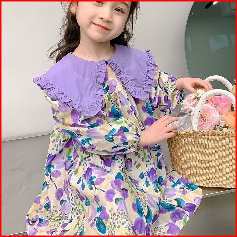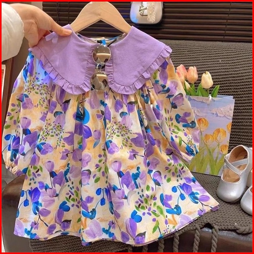 Princess Kesli 2-11 Tahun Gaun Anak Perempuan Gaya Korea Baru Dengan Kerah Bunga Untuk Musim Semi Dan Gugur 2025 Gaun Ma