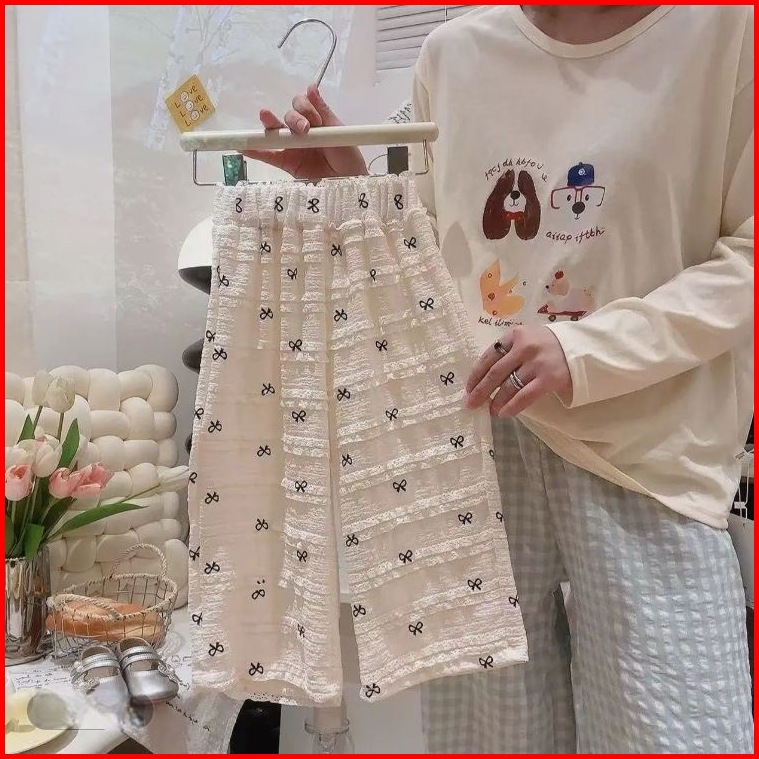 Princess Kesli 2-11 Tahun Celana Anak Perempuan Musim Panas Gaya Baru Penuh Cetak Pita Celana Kaki Lebar Bayi Perempuan
