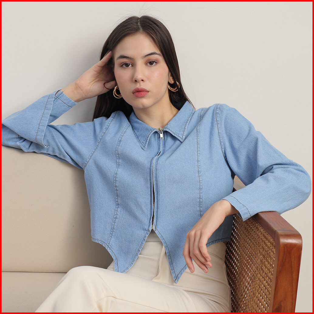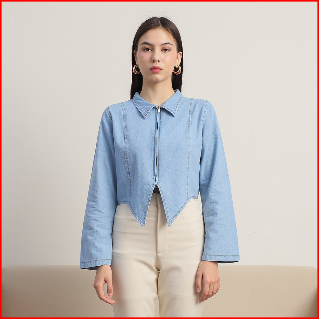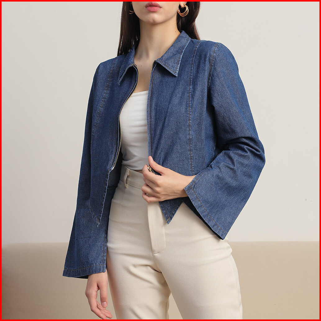 Tutuloph Amora Outer Top Top Wanita Denim Jeans - Denim Collection Jaket Zipper Outer Denim Navy Casual Fashion Normal B